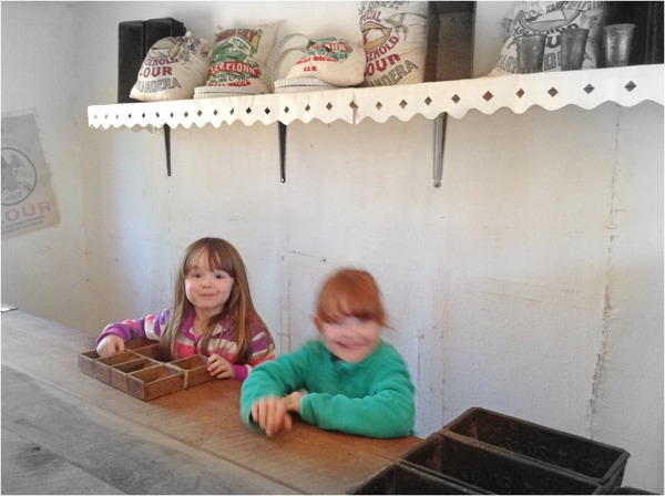 We continued to walk around the pioneer village learning the early history of Griffith. Here the girls are behind the counter in the bakers shop.